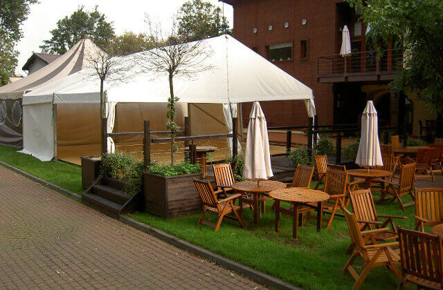 Imprezy plenerowe to najczęściej połączenie atrakcji rozrywkowych z ofertą gastronomiczną. Oferujemy zestawy biesiadne, które zamienią każdy pawilon w wygodną przestrzeń do ucztowania. Długie ławostoły mieszczące kilku uczestników zapewniają wygodę podczas spożywania posiłków we wnętrzu, jednocześnie chroniąc przed deszczem lub zbyt intensywnym słońcem.